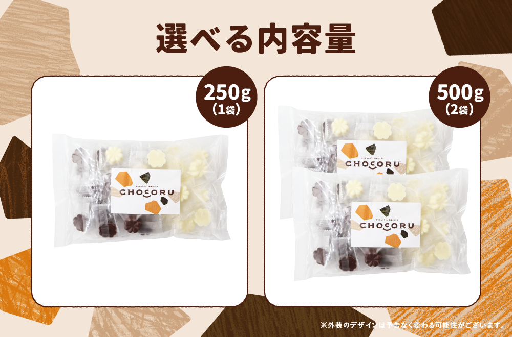 | 内容量 | ・250g(個包装込み) ・500g(個包装込み)(250g×2袋) |